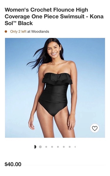 Brand is Kona Sol, size small (4-6). Bandeau style with crochet ruffle, adjustable and removable straps, sewn in cups, high coverage. New with tags, smoke free home. $10