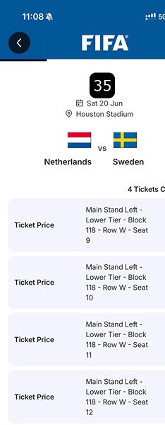 World Cup tickets to Match 35 - Netherlands vs Sweden