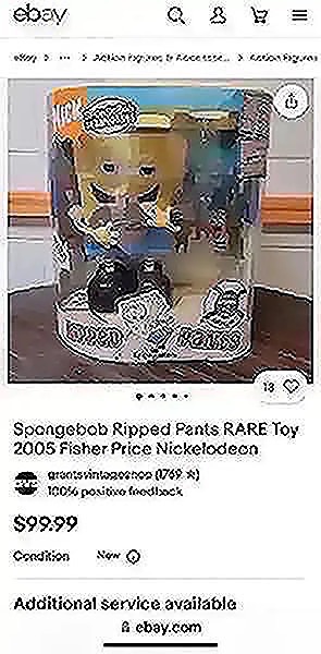 SpongeBob sings the “Ripped Pants” song. Sings, talks, moves and lights up!  Rare from 2005!