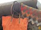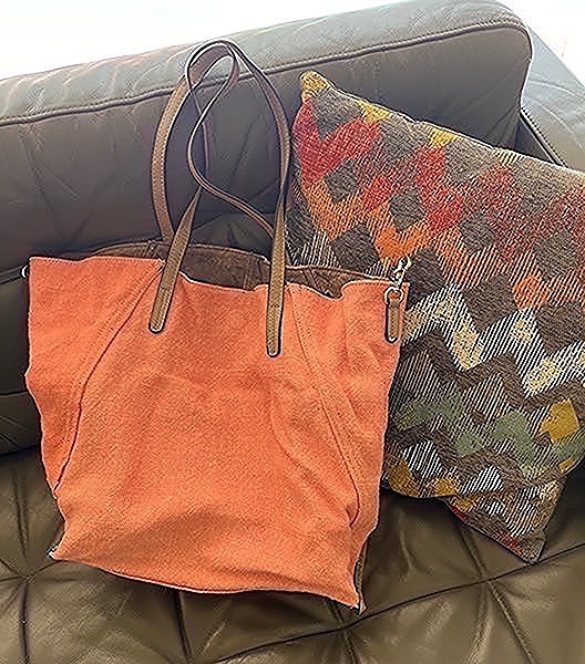 Coral canvas tote bag with faux leather straps.  Reversible and comes with attached coin purse…$20 firm