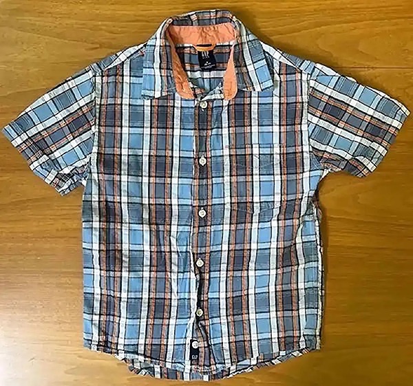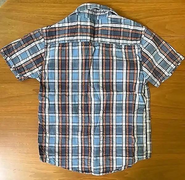 100% cotton, front pocket, shirt has a nice weight to it…$8