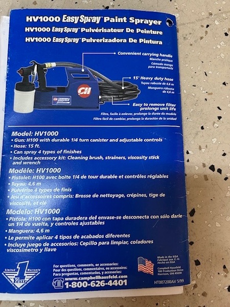 Campbell Hausfeld Electric Paint Sprayer, no compressor needed. Includes an extra length of hose for larger projects.