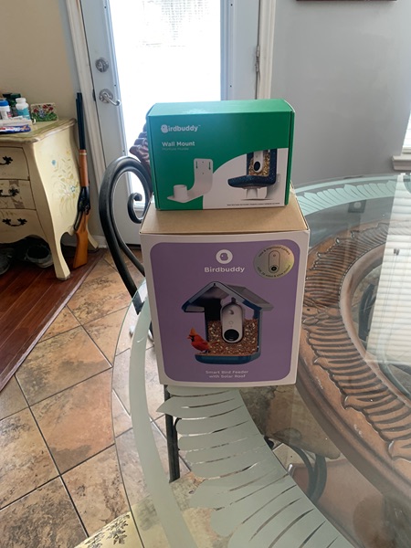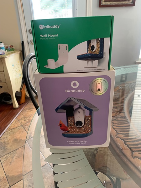 True Birdbuddy with solor roof, brand new in boxes. Opened but never used. Includes both Smart Bird Feeder and Wall Mount. Will separate.