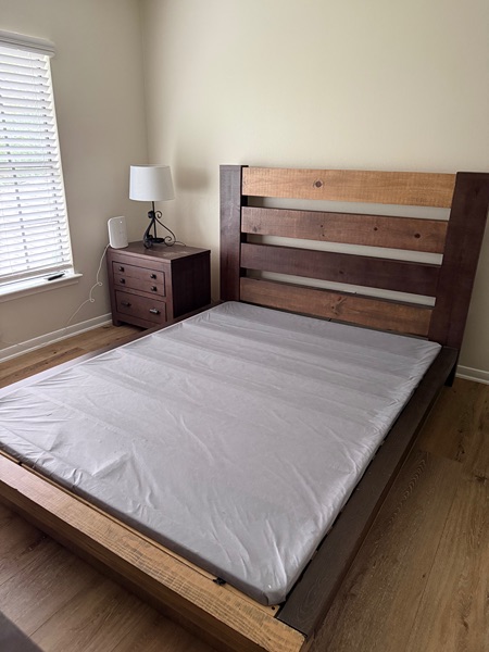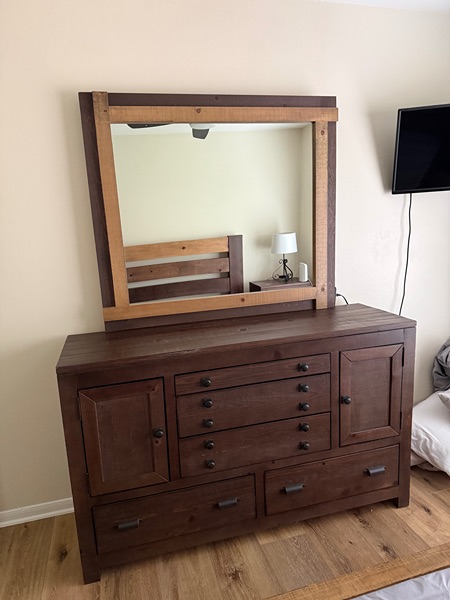 Like new youth/teen queen size wood bed frame, dresser and nightstand.