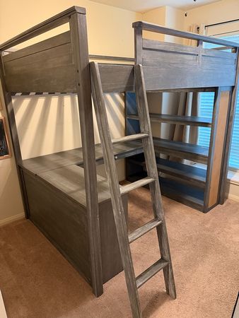 Pottery Barn Teen Sleep and Study Loft Bed Full bed, mattress not included. Additional details can be found at this link: https://www.pbteen.com/products/girls-sleep-and-study-loft/