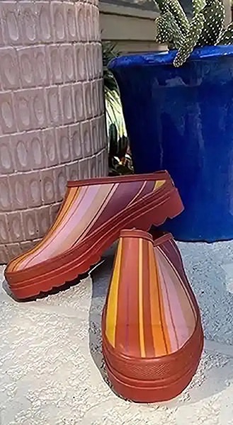 Keep your feet fashionably dry through the wet months ahead. Featuring steel shanks, durable rubber uppers, slip-resistant soles and foam insoles that are easily removed for cleaning. Marked an 8 but I’m a 7/7.5 and they fit….$25 firm
