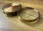 Outer brass casing shows wear, consistent with age. Inner magnifying glass is perfect, no chips/cracks. Approx. 3" round...$25 firm