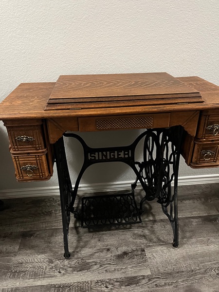 Cute antique sewing machine table. Great in entry way. Beautiful wood. Priced to sell!
