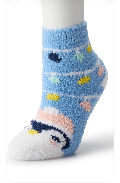 Cozy, soft, and fuzzy unicorn, penguin, and striped crew socks. New in package, fits ladies sock sizes 9-11. $5 each or $10/all
