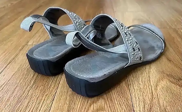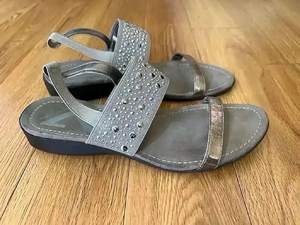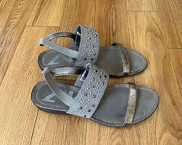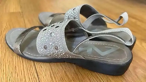 Stylish women's sandals with rhinestone embellishments. Rubber soles with comfortable elastic straps.