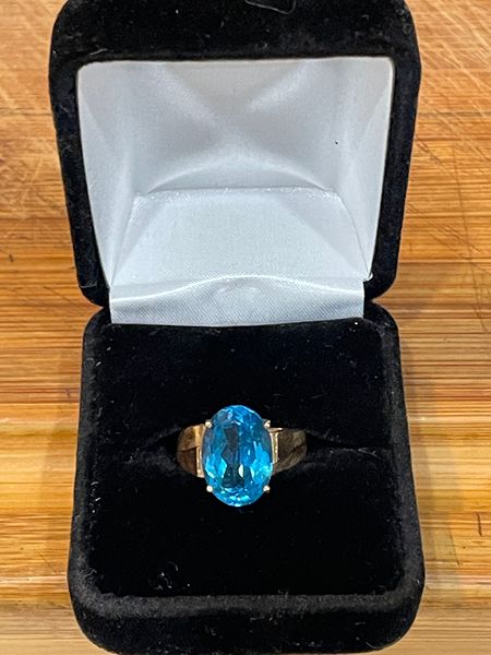 Past Down in Family Mother's Jewelry very nice blue topaz ring approx size 7 14 X 10 MM in size not lab created noted. Will negotiate for serious inquiry only. Will meet with you in a public bank america lobby to be seen as agreed. Please call for Rocky A. at 936 442 1117 or email series inquiry only please a very nice ring selling now purchased in Macy's 1984 Yr long Island,NY.