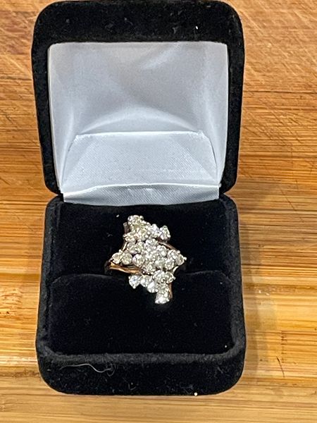 Family is selling mother's diamond cocktail ring has 29 diamond's round brilliant cut color is Si-2 clarity size is (1) .18 carat and (28) .08 carat each with 4.29 dwt noted within. Was purchased at the Diamond Exchange Empire State Bldg. 61 flr. back in 1986 time frame noted within. Size is approx 7 women. Serious inquiry only will meet up at public bank of america bank lobby only willing to negotiate on price OBO thankyou for looking. Rocky A. 936 442 1117 or email on Ad thankyou. Family is down sizing.
