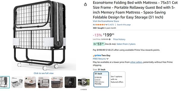 Comes with mattress and metal frame that can be collapsed for easy storage. Recently purchased off of Amazon but no longer need and impossible to return because it won't fit back in box. Looking to sell for half of what I paid for ($200 each, $400 total). Basically brand new. Neither has been slept on. Both beds are assembled but can fit in a large SUV or pickup truck.