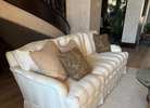 7 ft. White cotton jaquard Sherrell sofa. Excellent condition - no stains, no smoking, no pets, no kids and VERY comfortable. Three seat cushions and three loose back cushions. Decorative pillows not included.