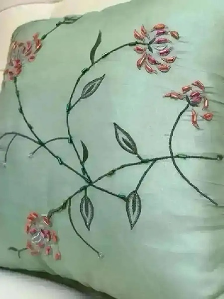 Beaded silk accent pillow with floral embroidery