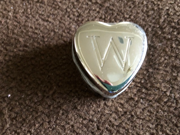 Small Silver Heart Shaped Box with W on the Lid