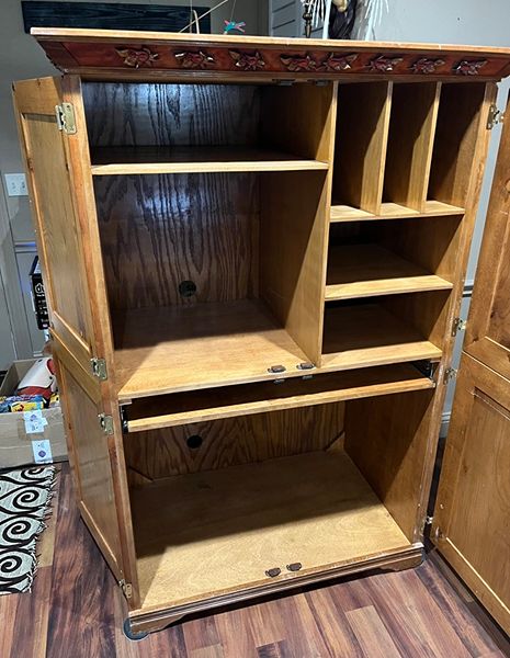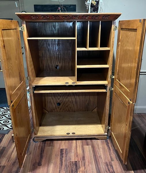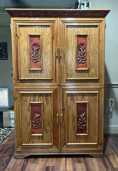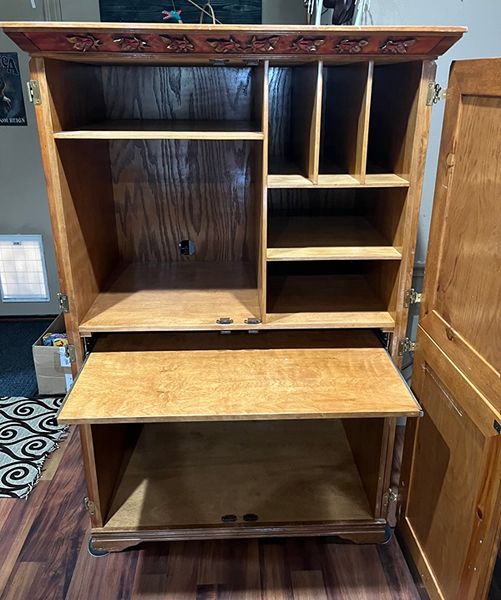 Entertainment / Computer Armoire Center - Leather Inlay & Rose Accents