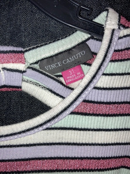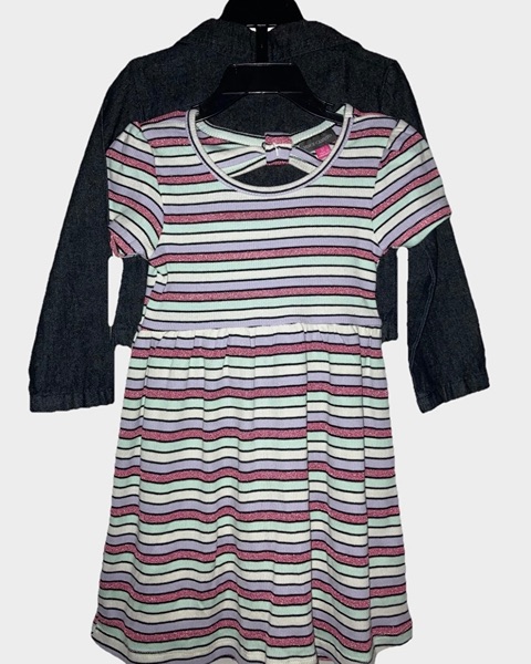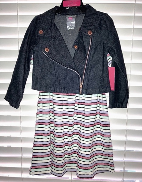 Vince Camuto brand dress, size 3T. Horizontal sparkly striped short sleeve dress with coordinating jean jacket. New with tags from smoke free home. $15
