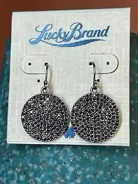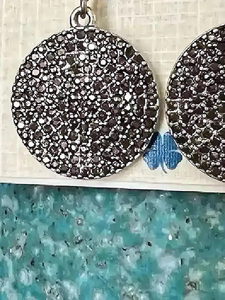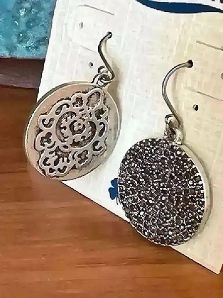 Gorgeous shimmering discs dangle on clasps and catch the light so beautifully! They also have a lovely design on the back of the discs. 3/4” discs with a total measurement of 1 1/2” from clasp. (Originally $32)…$25 firm