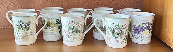 Beautiful floral design mugs, perfect for tea or coffee. Eleven mugs total…$50 total
