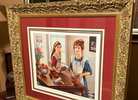 The art work depicts two young women in a kitchen setting, engaged in the activity of baking, with ingredients like apples and a rolling pin visible on a table. Pati Bannister is known for her romantic and nostalgic art, often featuring young women and themes of childhood or domestic life. The ART work comes with a matted fantastic frame in pristine condition. Produced in 1990, this contemporary piece reflects the style of illustration art and is an original print from the United States. The artwork is a collectible item that would make a lovely addition to any art lover's collection.