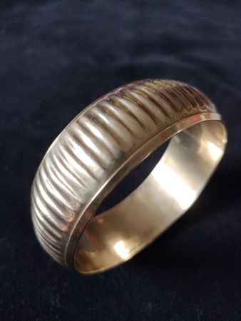 BRASS RIBBED BANGLE BRACELET MID CENTURY BOHEMIAN