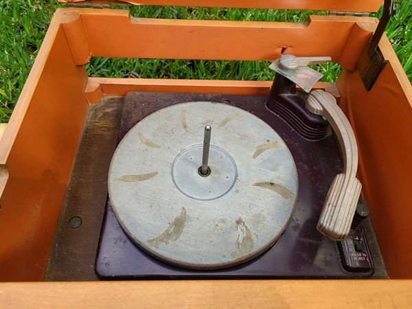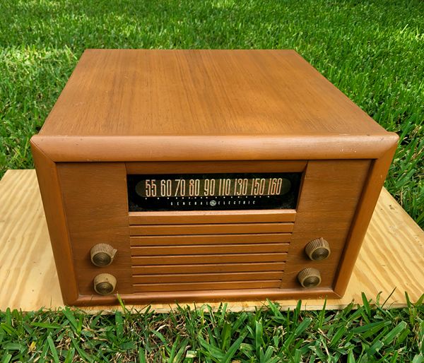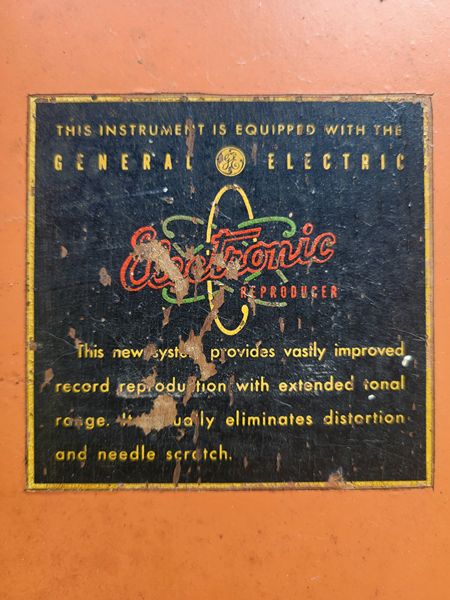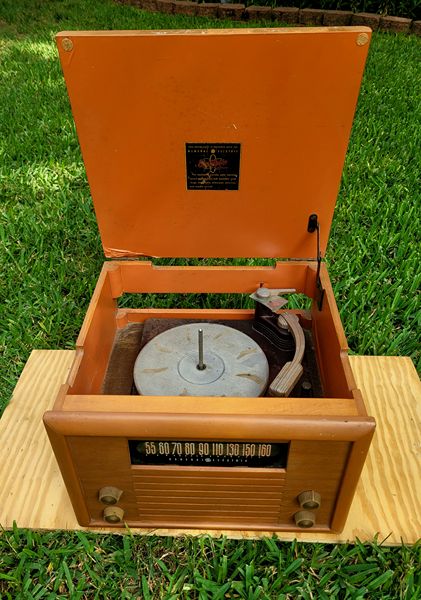 Circa 1946-47 GE Model 303 Radio and Record Player Plays 78 speed shellac records plus AM radio. Restorable. Cabinet has been refinished. ELECTRONICS CURRENTLY NOT WORKING. Turns on and platter spins, but that's it. Not sure what it needs or if parts are even still available. Nice collector piece, though. Asking $30 obo.