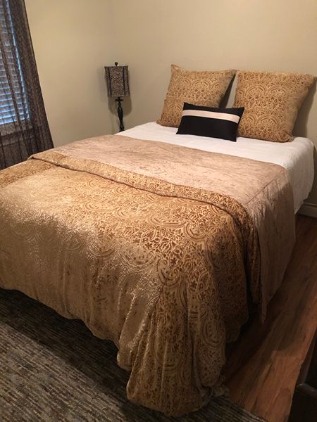 Full size Adjustable remote bed frame and mattress purchased from Rooms To Go. This has many functions with remote; yes it works; inclines, sits up, bends at the knees, vibrates at different levels and massages. Has been used in our guest room for several years, very clean, no pets in room. We are turning the room into an office. This is very heavy and sturdy. You will need help.