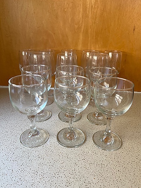 Set of 14 wine glasses- red & white wine…$15 total, firm