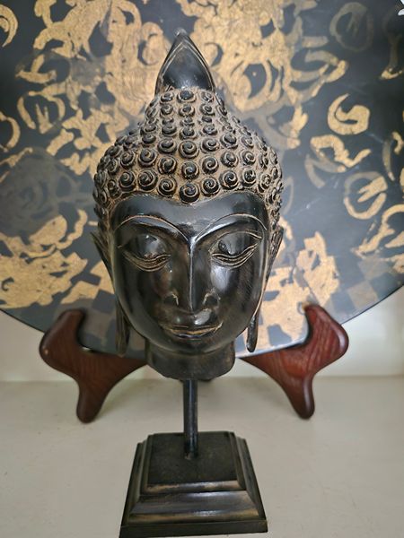 Buddha Head statue, approx 11 inches, metal Bombah Company, like new condition