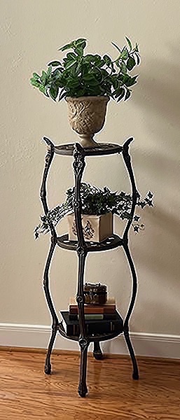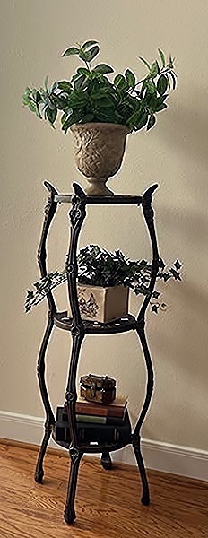 Victorian style design with intricate patterns on the circular shelves and elegant, curved legs. Versatile for both indoor and outdoor use, suitable for displaying potted plants, flowers, or other decorative items...$75 firm