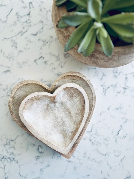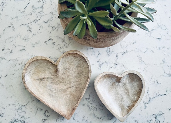 Two Mango Wood Heart Bowls