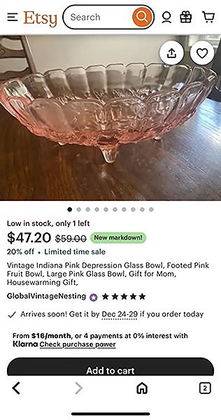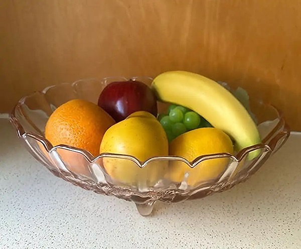 • It is a heavy, pressed glass piece often used as a centerpiece or serving bowl. Would also look great on bathroom countertops with rolled hand towels for guests…$30 firm