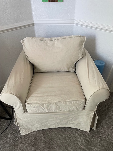 Pottery Barm classic Mitchell Gold armchair with removable covers.
