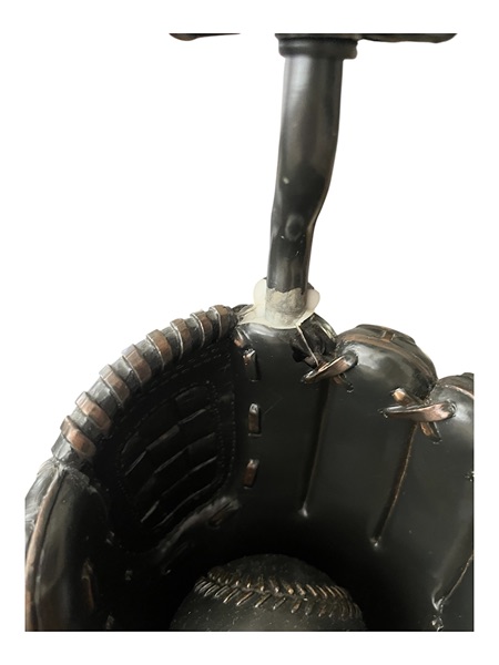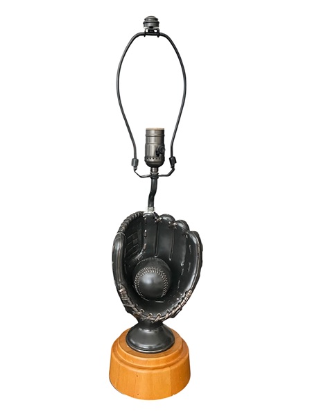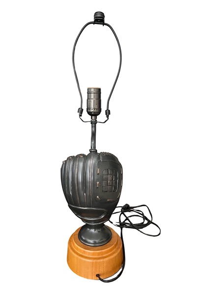 Fun baseball themed lamp. Bronze glove wth wooden base. I have a shade that is a bit damaged if you would like as well. Slight damage to the top of the glove where it meets the lamp base. No longer available on Pottery Barn Teen website. Original price over $100.