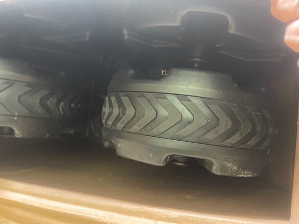 Never used, has brakes, all terrain wheels, collapsible. Wheels dirty because end of box open and part of box was facing down in storage. Serious buyers only