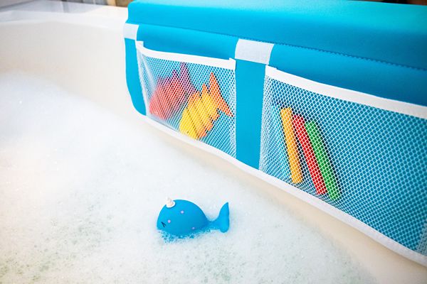 Bath Kneeler and Elbow Rest Pad, 2 Pc. Set, Knee and Body Protection with Non-Slip Base, Large Toy and Bath Accessory Pocket Storage, Compact Foldable Cushion Design (Blue)