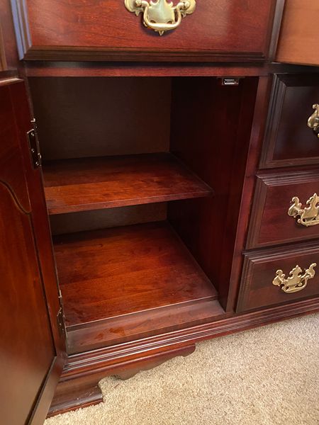 Priced for a quick sale at $600 for the complete set: china cabinet, table, both leaves, and 6 chairs.