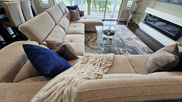 Purchased 11 months ago for $2100.00, this Modern elegance with a contemporary twist, this 4-piece Fortegra Sorrento sectional offers indulgent comfort with quality.