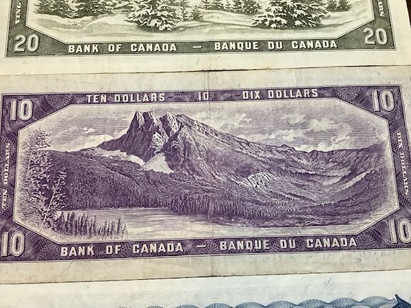 Canadian Banknotes Paper Bills 1972 + 1954 & 1954 Photos