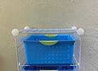 Organizer rack with four Sterlite blue plastic bins (large ultra size 16” x 13” each). We used for Lego’s but you can use it for anything!…$40 firm