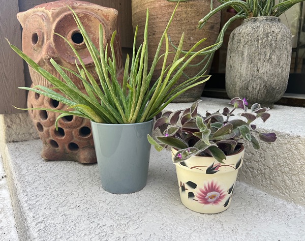 -Aloe Vera in grey pottery (this guy is loaded with aloe Vera plants!)…$20
