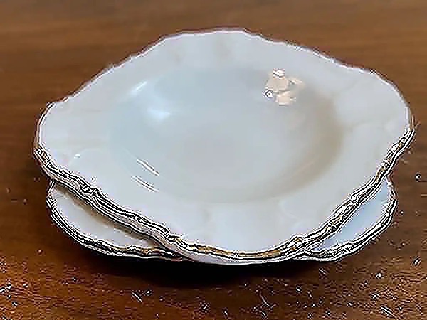 These small and dainty ashtrays were my grandmother’s. There are two available. White porcelain with gold painted rim. No chips or cracks. Measures about 3 3/4” square…$8 each or both for $15