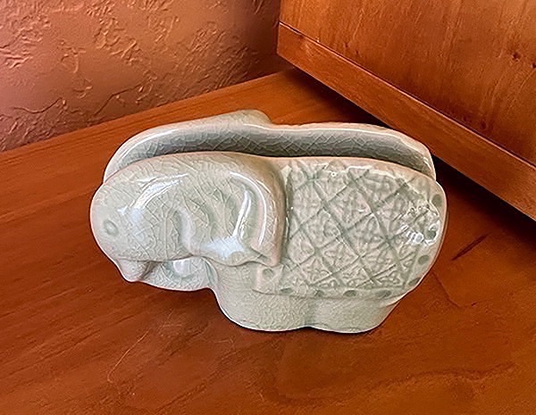 Celadon Crackle Elephant Business Card Holder - New Photos