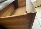 This is a Century Chin Hua by Raymond K. Sobota Asian Chinoiserie nightstand or chest with burl wood veneers and black lacquer accents. Some imperfections.