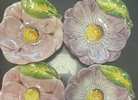 Decorative ceramic dishes or plates molded in the shape of stylized flowers (petals, leaf‐elements) and hand-painted in bright glazes.