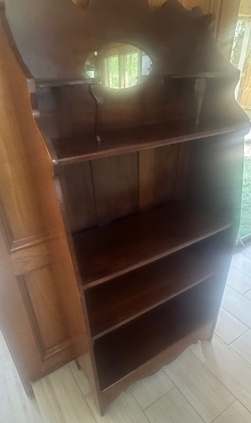 This 19th-century Victorian/Edwardian bookshelf boasts a classic style with four shelves, perfect for showcasing and storing books. Made of wood, this bookcase stands at 62 inches tall with a length of 29 inches and a width of 13 inches. The intricate design and Victorian style make it a unique and charming addition to any home library or antique collection. A true vintage gem with a sturdy construction and timeless appeal.