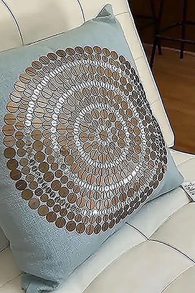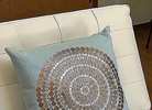 Light blue fabric with beautiful sequin detail. Poly fill, 18” x 18”, Stored in plastic. New with tag! (Orig. $48)…$35 firm