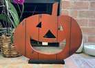 -Rustic wooden pumpkin / jack-o-lantern decoration for Fall /Halloween. Approx. 18 1/2” x 3” x 16”…$20 firm
