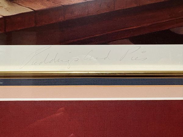 Beautiful Artwork "Pudding and Pie" by artist Pati Bannister is a large, beautifully illustrated print. Its hand signed and numbered with a certificate of authenticity. This is a limited edition print, specifically numbered 408/485, indicating it is one of 485 copies in this edition. Measures: Length 31. 1/4 Height 28”, Width 2”.